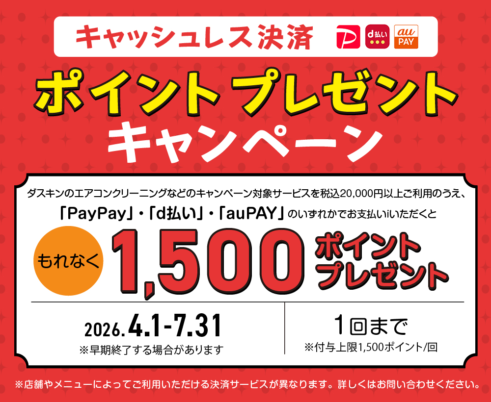 ダスキンでは2年~3年に一度程度のエアコンクリーニングをオススメさせていただいております。(エアコンの使用状況により適切なエアコン清掃・掃除の頻度は変動いたします。)