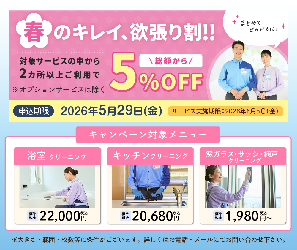 また、特定の箇所をクリーニングさせていただくのではなく、お家全体の清掃をさせていただくお得なセットメニューのご用意もございますので、詳しくはセットメニューのページをご覧ください。